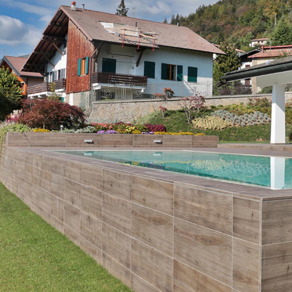 Plošče Harena Holz Marrone so ustvarjene za tiste, ki želijo svoji terasi ali balkonu vdihniti karakter starega, masivnega lesa. Ta porcelan gres v debelini 2 cm v temno rjavi barvi ponuja vizualno globino, ki jo najdemo le pri najlepših naravnih lesnih vrstah.
